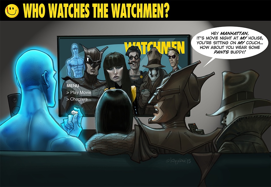 “Who watches the watchmen?” (The image is a joke based on the meaning of “watchmen.”)